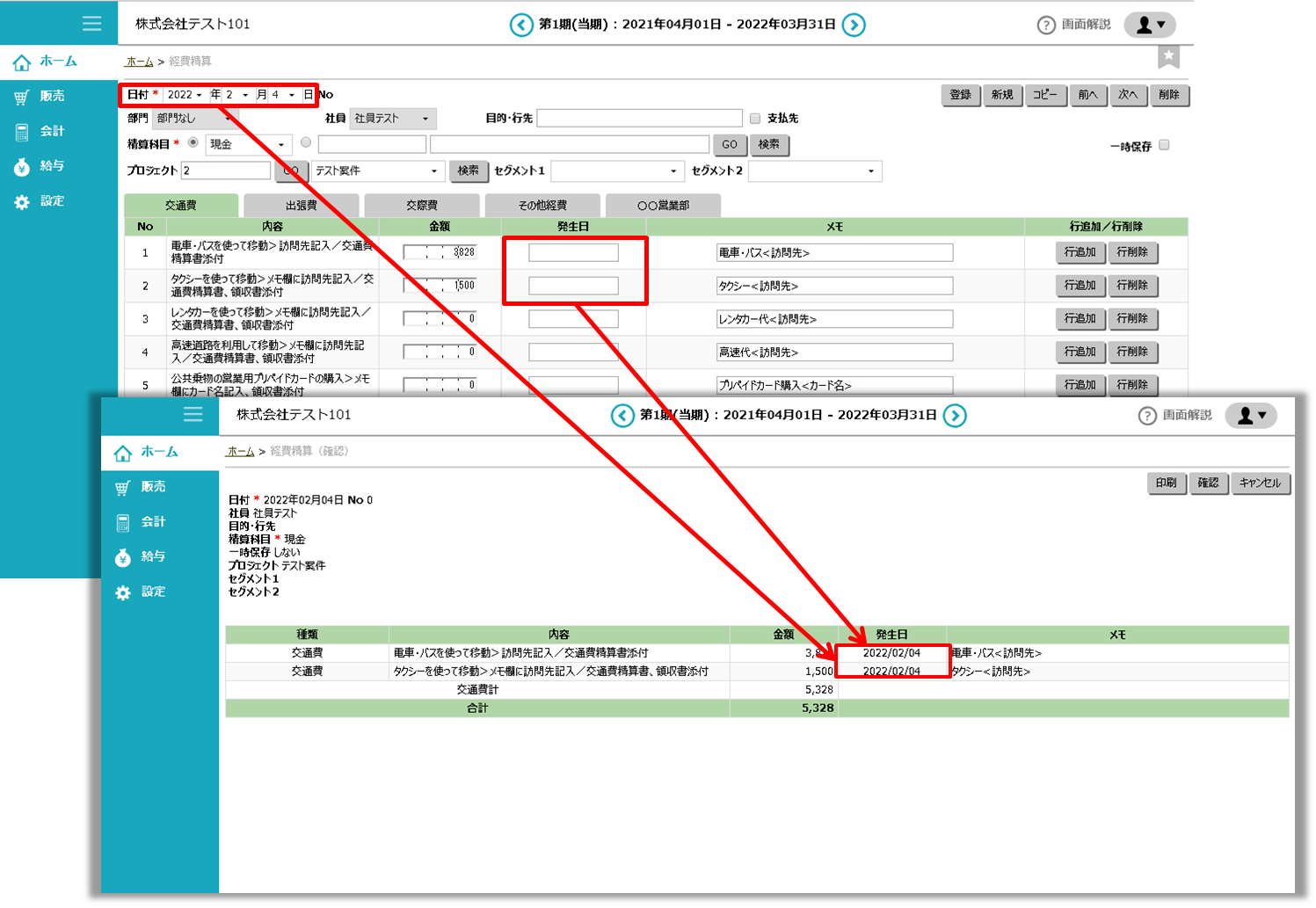 「発生日」は空欄のままでも登録できます。その場合、画面上部の「日付」が「発生日」として反映されます。