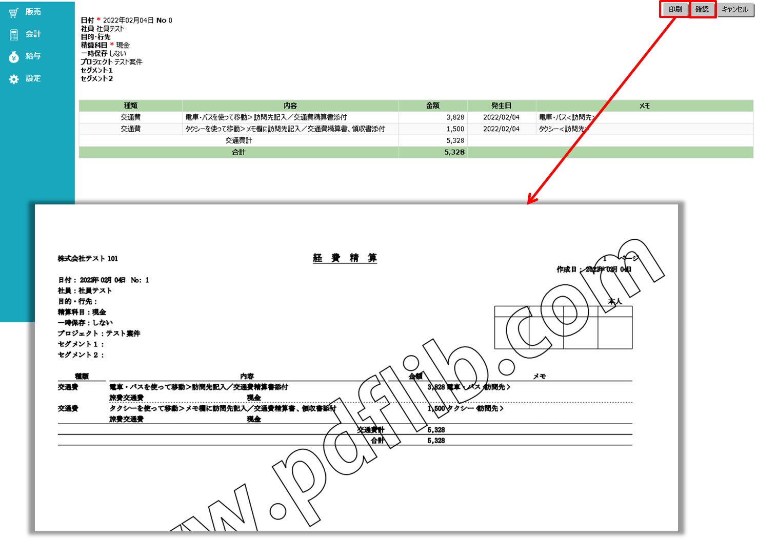 ⑥ 「印刷」ボタンをクリックすると、データを登録後、PDFで出力されます。