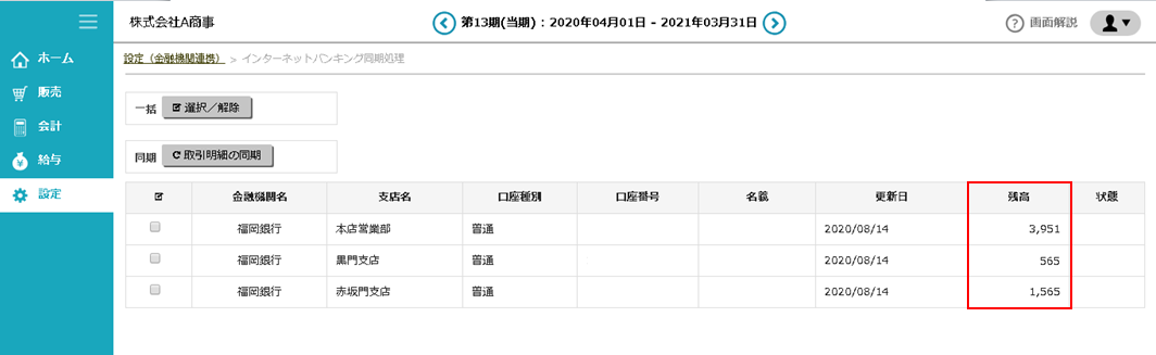 ④ 同期が完了すると、「残高」が更新されます。ご確認ください。