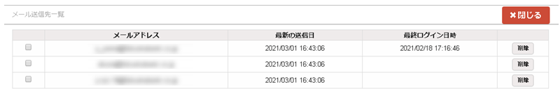 ユーザーを削除したい場合は、一覧右の「削除」ボタンをクリックします。