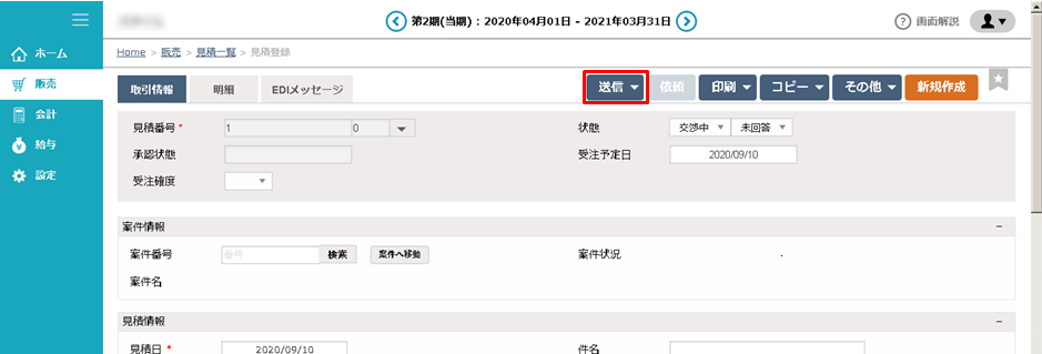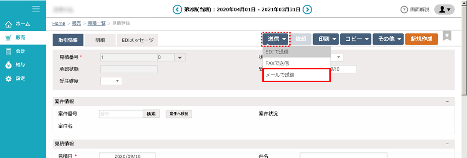 ※「EDIで送信」,「FAXで送信」,「メールで送信」の選択が可能です
