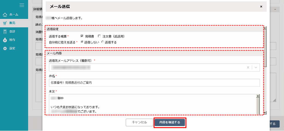 ※帳票以外の送信設定やメール内容についてもご確認下さい。