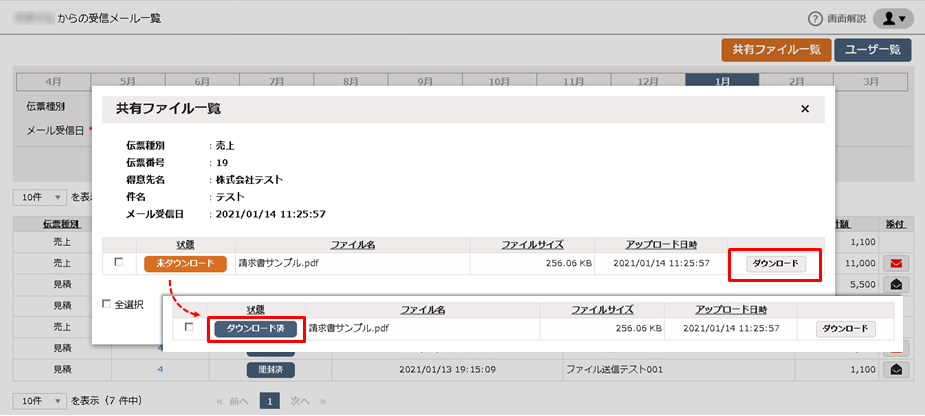 帳票の他に添付されているファイルをダウンロードが可能できます。